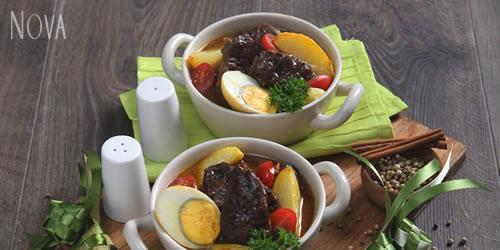 - 2 Tambahkan SASA Santan Bubuk, kecap manis, dan garam, aduk rata hingga daging empuk. Tambahkan kentang dan telur. Masak kembali hingga semua bahan matang. Angkat.